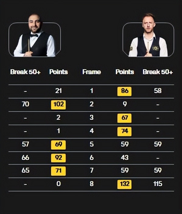 比赛第一局,特鲁姆普凭借单杆58分先拔头筹。有关词瓦菲并未怯场,他在第二局稳住阵地,回敬一杆70分将比分扳平。随后两局,特鲁姆普展现寰球第一的调养才气,鸠合打出单杆59分和58分,以3-1起初参预局间休息。